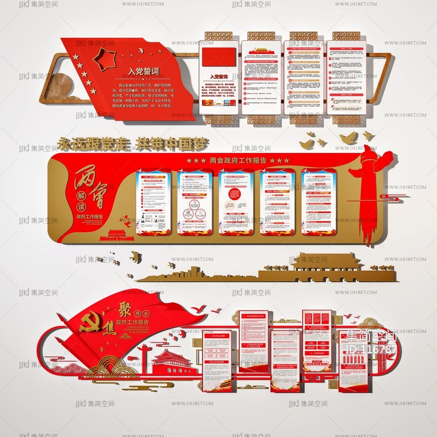 新中式党建文化墙_宣传栏 3d模型下载 [模型ID:116787]