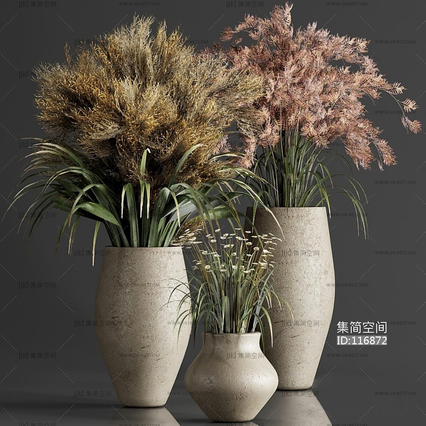 现代干草盆栽3d模型下载