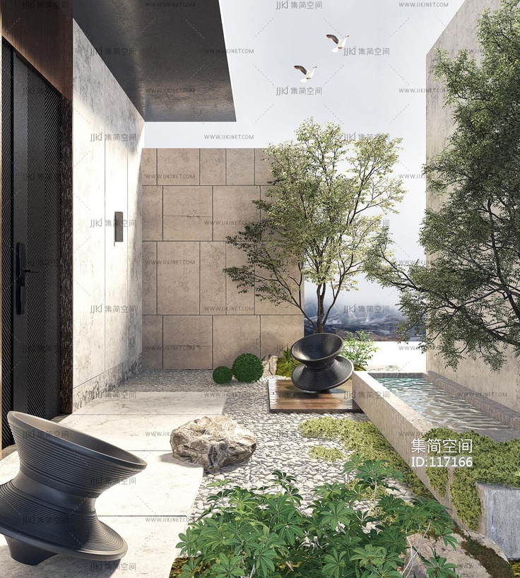 新中式庭院 庭院景观3d模型下载