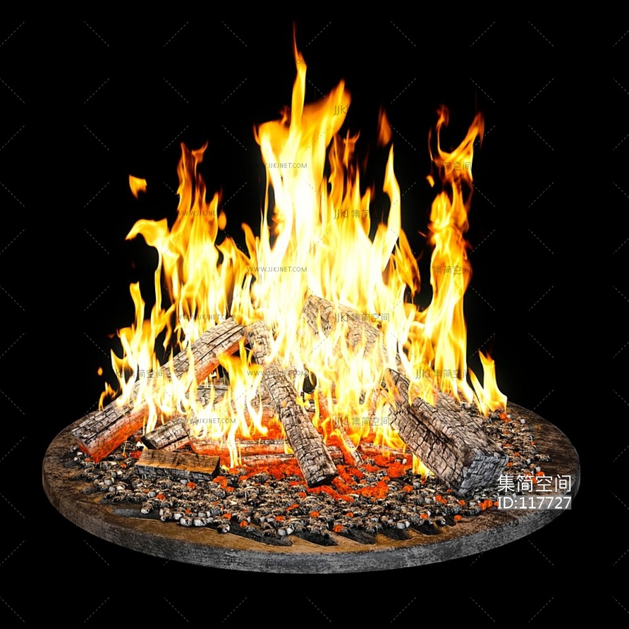 现代户外木炭篝火 3d模型下载 [模型ID:117727]
