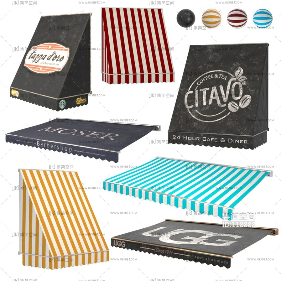 现代布艺遮阳篷套装 kitbash 3d模型下载 [模型ID:118888]
