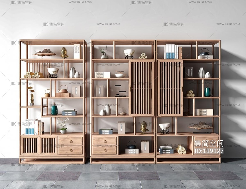 新中式博古架, 3d模型下载 [模型ID:119127]