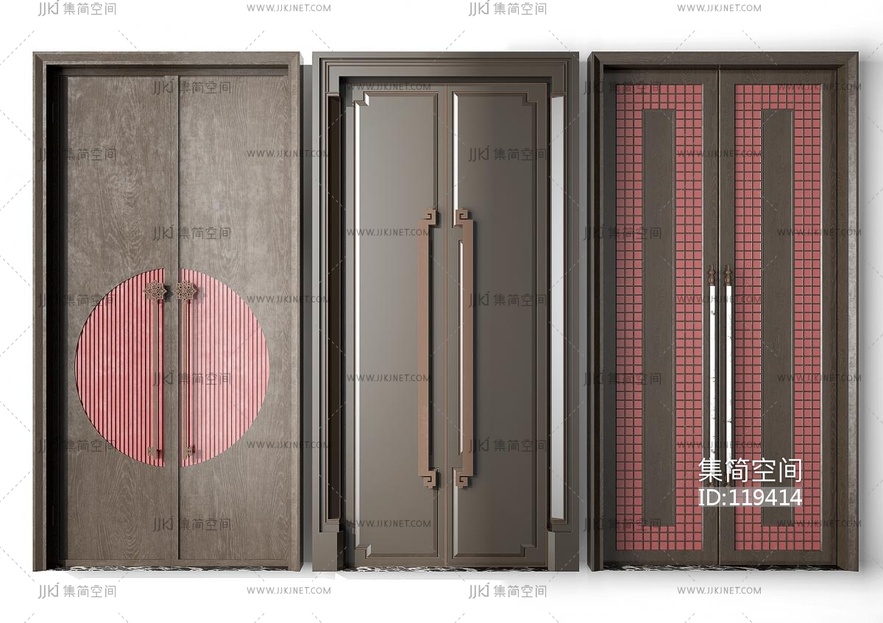新中式实木双开门 3d模型下载 [模型ID:119414]