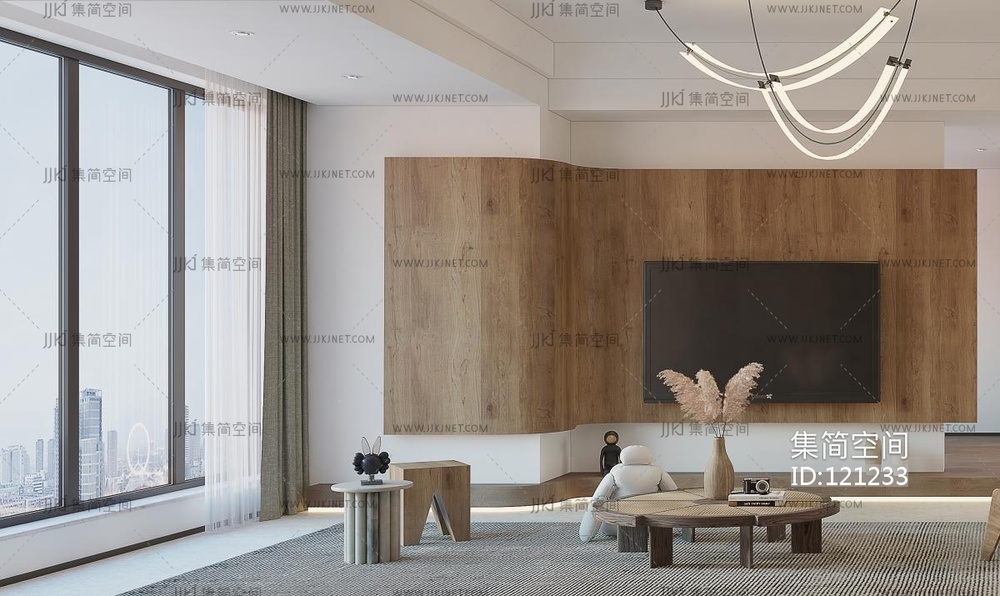 中古风客厅,美式客厅,圆形茶几,装饰画,移动电视,3d模型下载