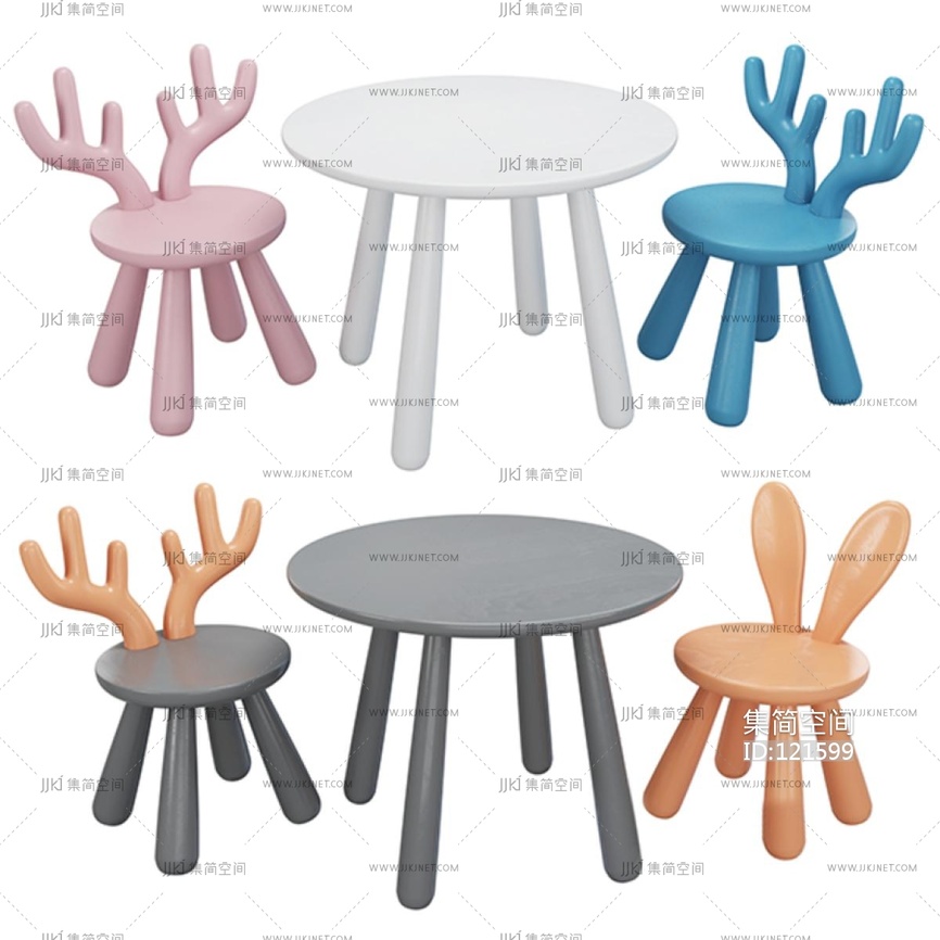 11兔子椅鹿角椅儿童座椅儿童桌椅3d 3d模型下载 [模型ID:121599]
