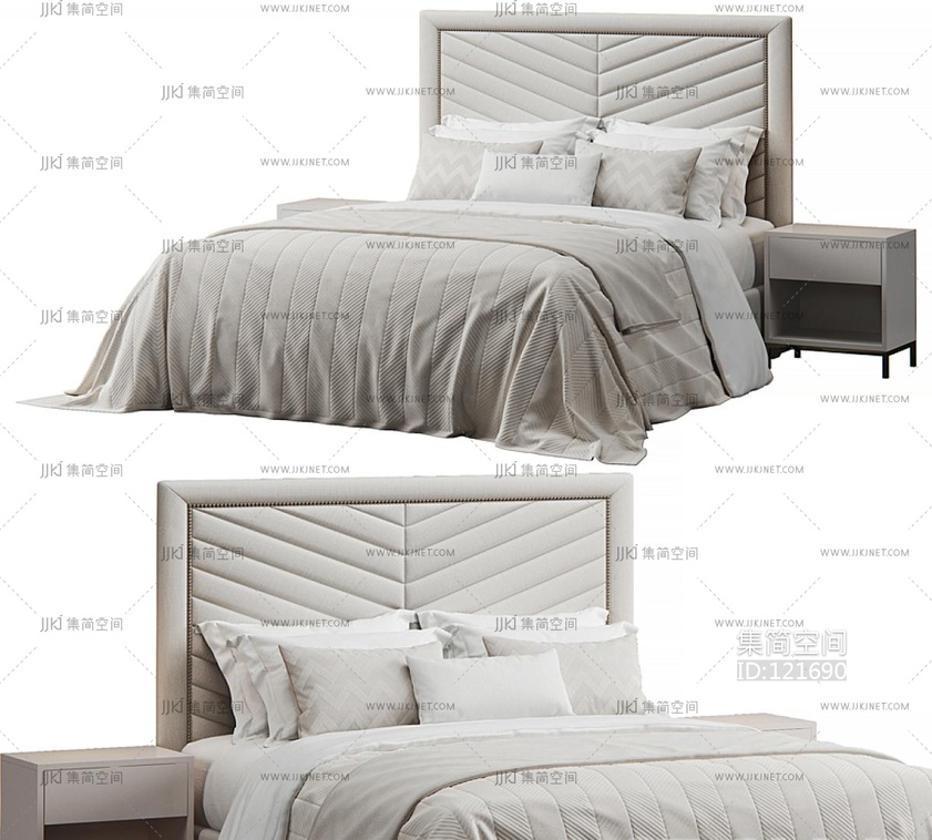 Rhys Dovetail 簇绒钉头床头板床 3d模型下载 [模型ID:121690]