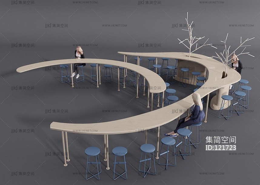 异形吧台吧椅,办公桌椅,人物树枝造型发光树,枯树 3d模型下载 [模型ID:121723]