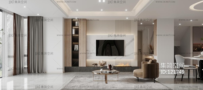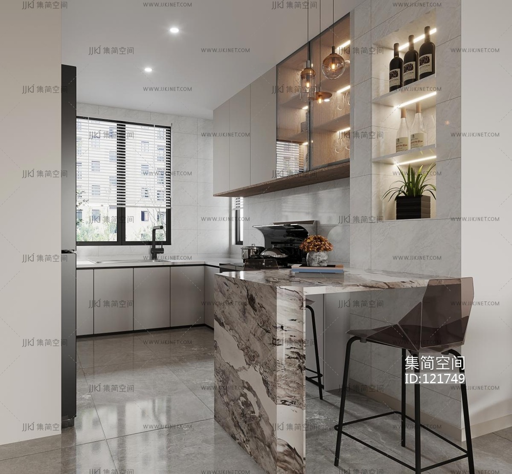现代客餐厅,沙发圆形餐桌椅厨房 3d模型下载 [模型ID:121749]