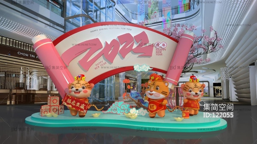 中国风卷轴画卷2022年虎年美陈新年美陈 3d模型下载 [模型ID:122055]