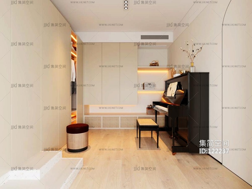侘寂衣帽间钢琴钢琴房 3d模型下载 [模型ID:122237]