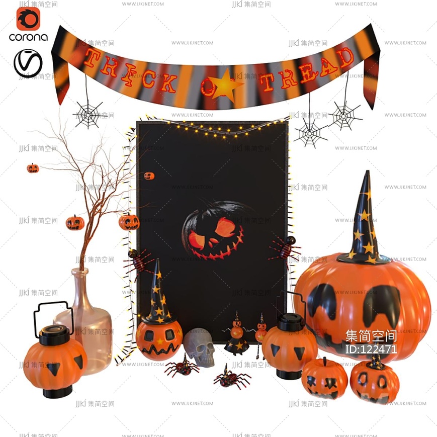 现代万圣节饰品摆件,南瓜灯 3d模型下载 [模型ID:122471]