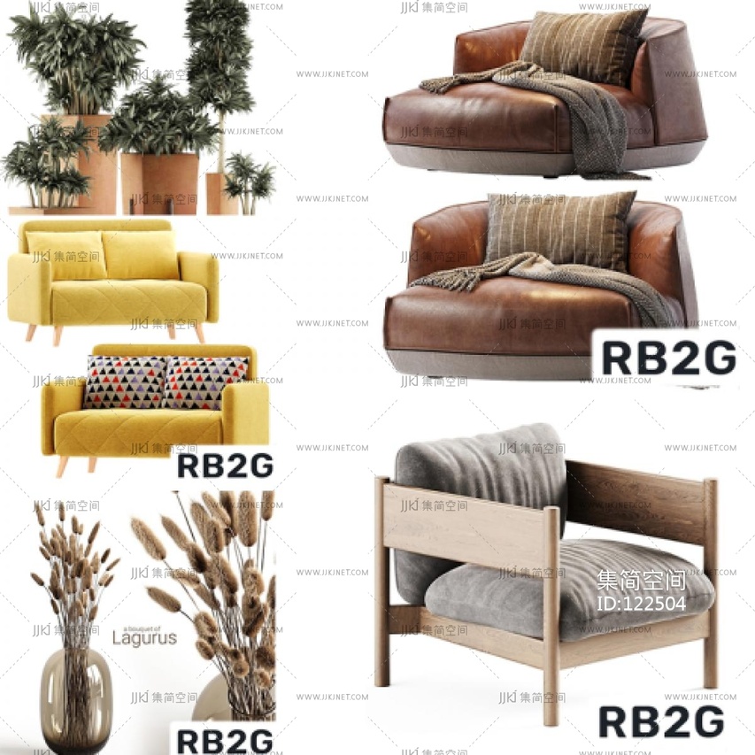 2022年精品3Dmax室内模型(沙发,床,绿植,吧椅,)3d模型下载