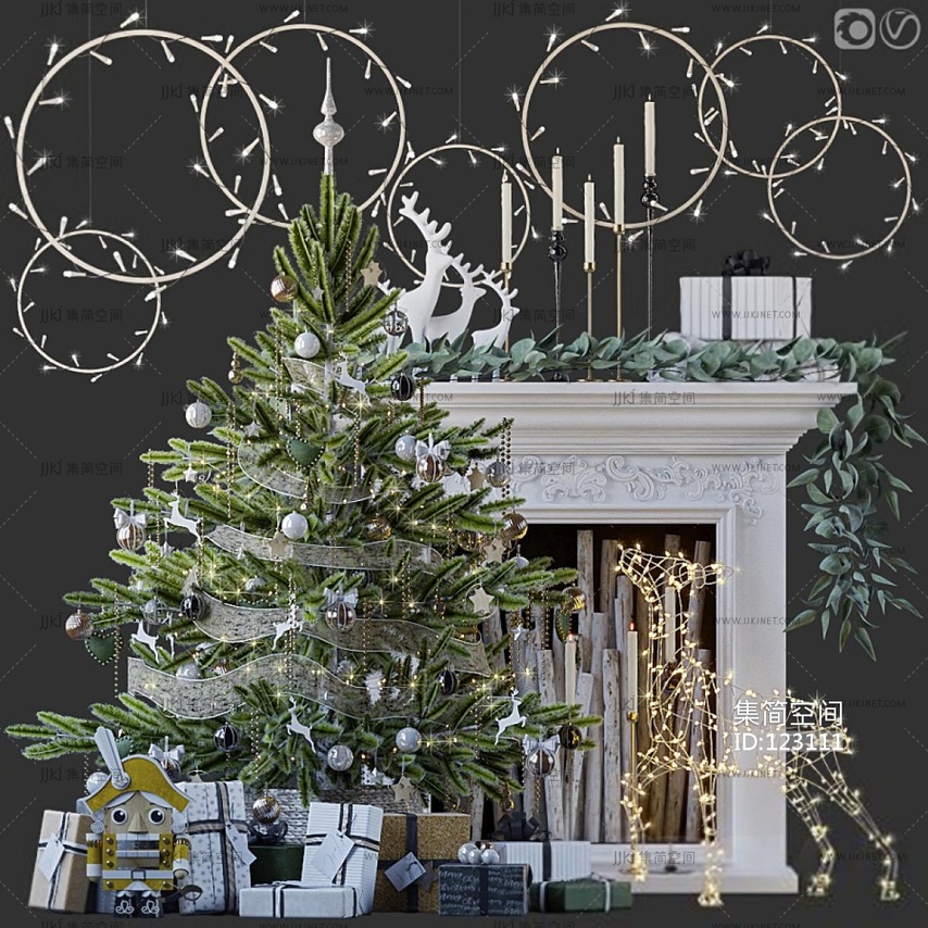 现代圣诞树壁炉装饰美陈 3d模型下载 [模型ID:123111]