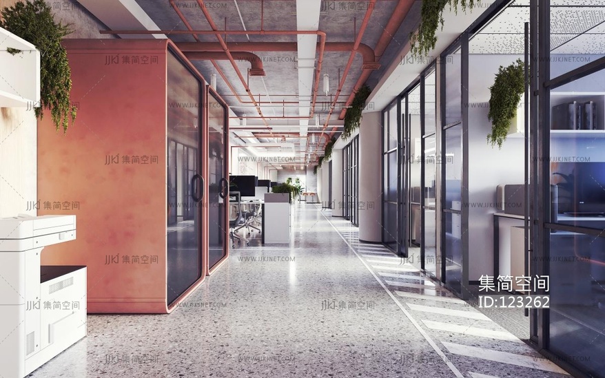 工业风开敞开放办公区 3d模型下载 [模型ID:123262]