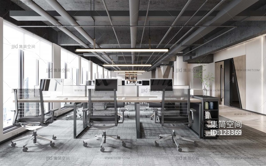 现代办公室开敞办公区 3d模型下载 [模型ID:123369]