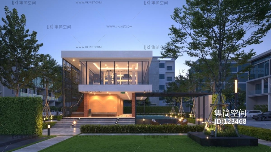 现代别墅外观景观 3d模型下载 [模型ID:123468]