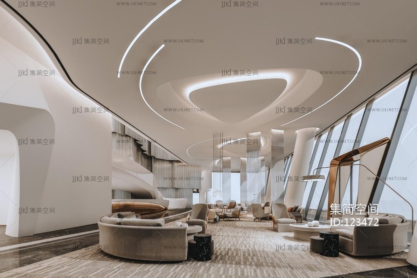 新中式售楼处入口大堂服务太接待台3D模型3d模型下载