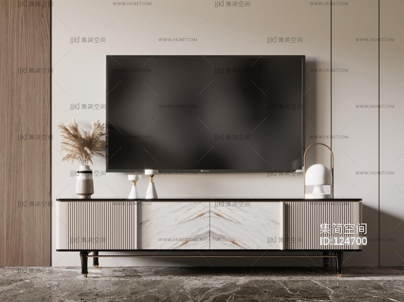 现代电视背景墙,满墙电视柜,电视机,储物柜,饰品摆件3D模型3d模型下载