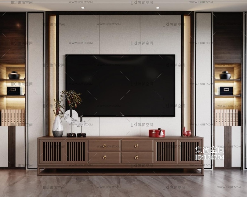 新中式电视柜 3d模型下载 [模型ID:124704]