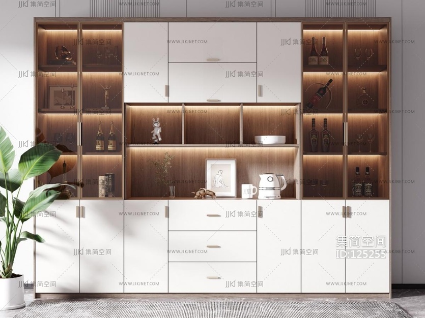 现代实木酒柜 3d模型下载 [模型ID:125255]