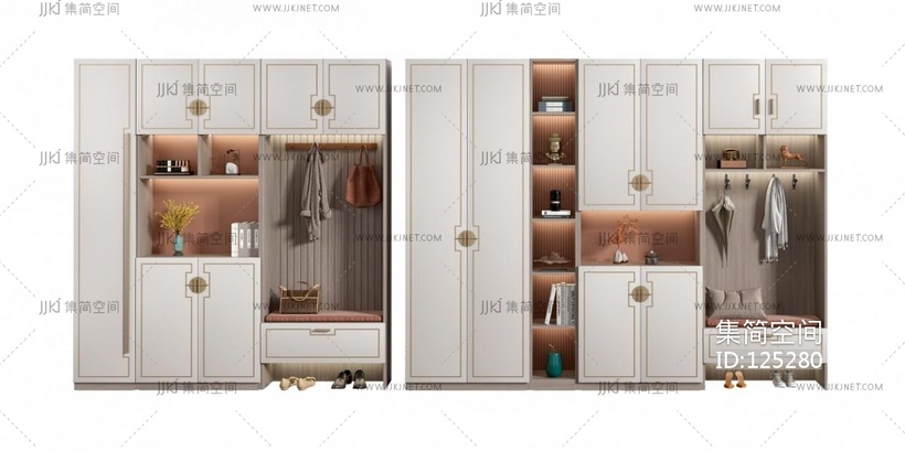 新中式鞋柜玄关 3d模型下载 [模型ID:125280]