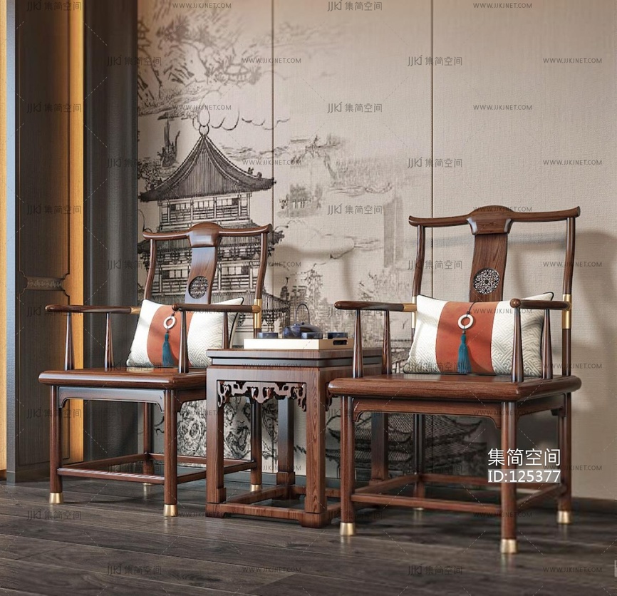 中式古典实木太师椅,椅子边几 3d模型下载 [模型ID:125377]