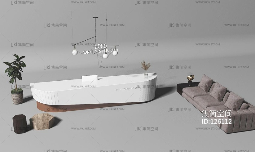 01后现代前台接待台服务台,弧形接待台 3d模型下载 [模型ID:126112]