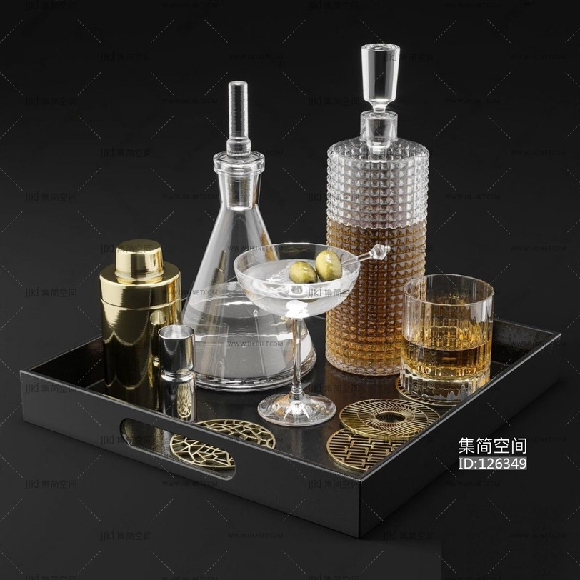 洋酒组合_托盘_酒瓶3d模型下载