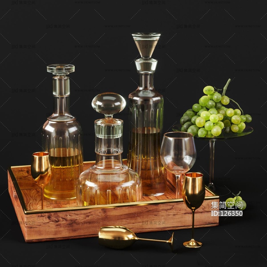 红酒i洋酒酒杯托盘鸡尾酒 3d模型下载