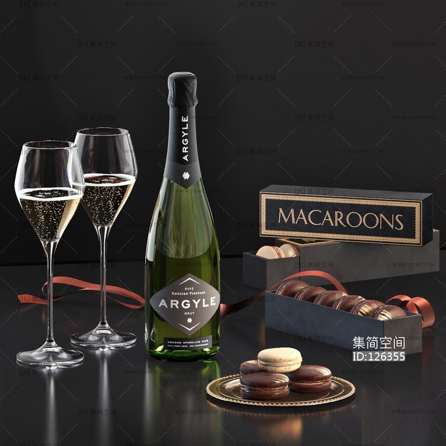 红酒洋酒酒杯高脚杯点心 3d模型下载 [模型ID:126355]
