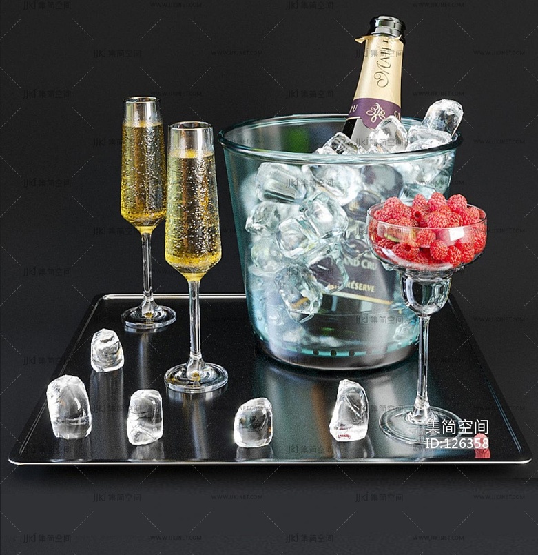 洋酒鸡尾酒高脚杯冰桶组合 3d模型下载 [模型ID:126358]