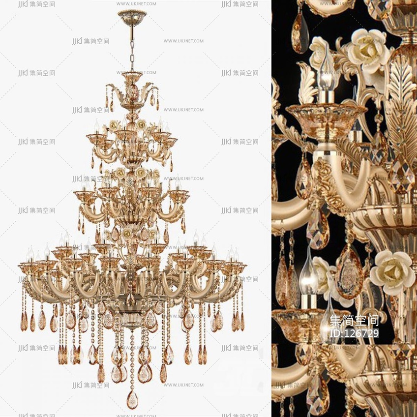 古典欧式大型水晶吊灯 3d模型下载 [模型ID:126729]