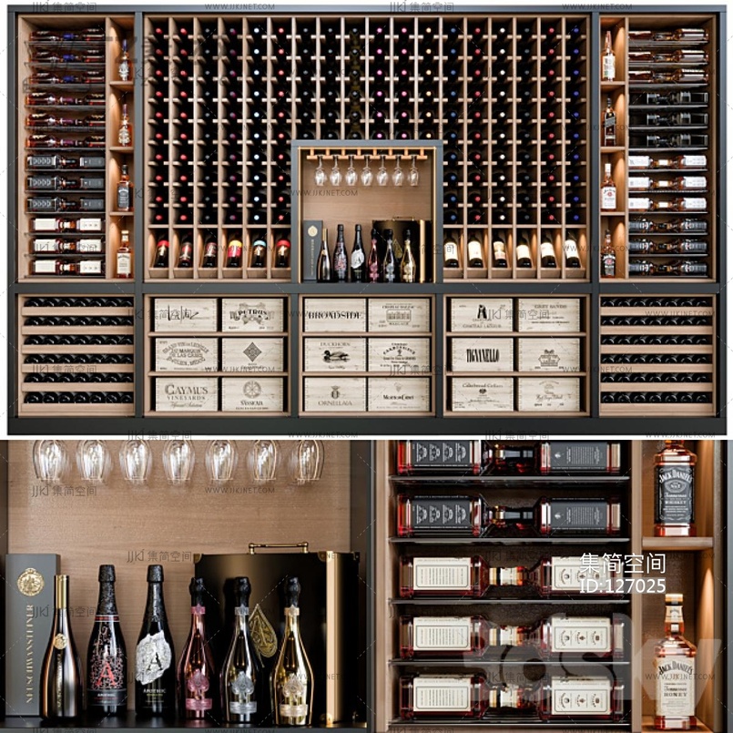 现代酒柜圆柱形酒柜酒瓶子红酒高脚杯3D模型3d模型下载