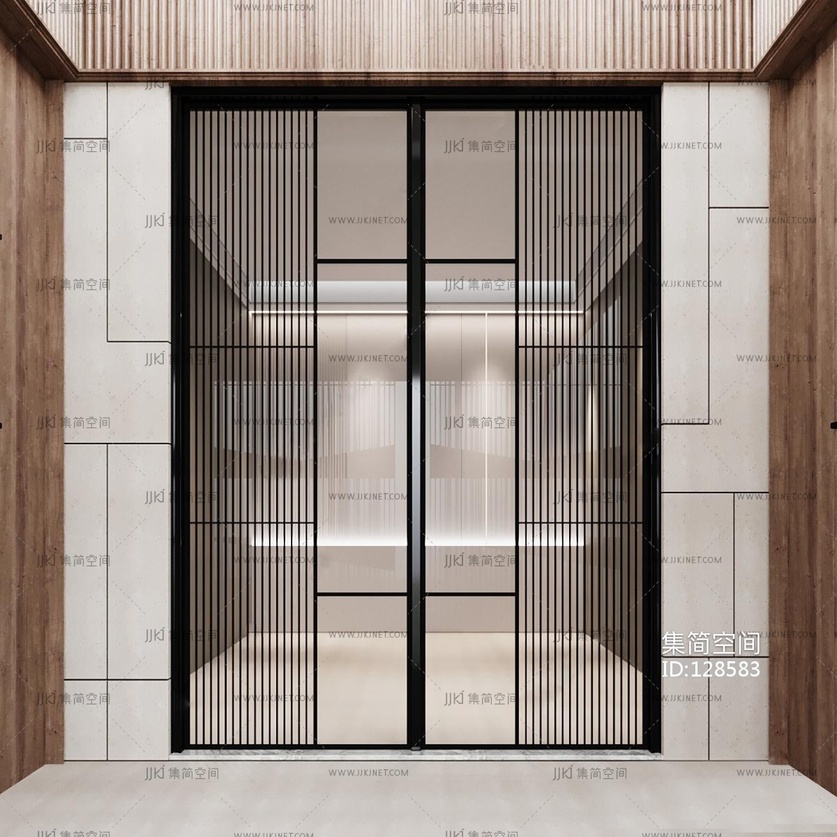 现代铁艺玻璃门推拉门 3d模型下载 [模型ID:128583]