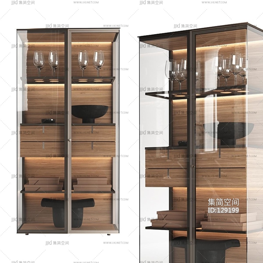 现代玻璃装饰柜,酒柜 3d模型下载 [模型ID:129199]