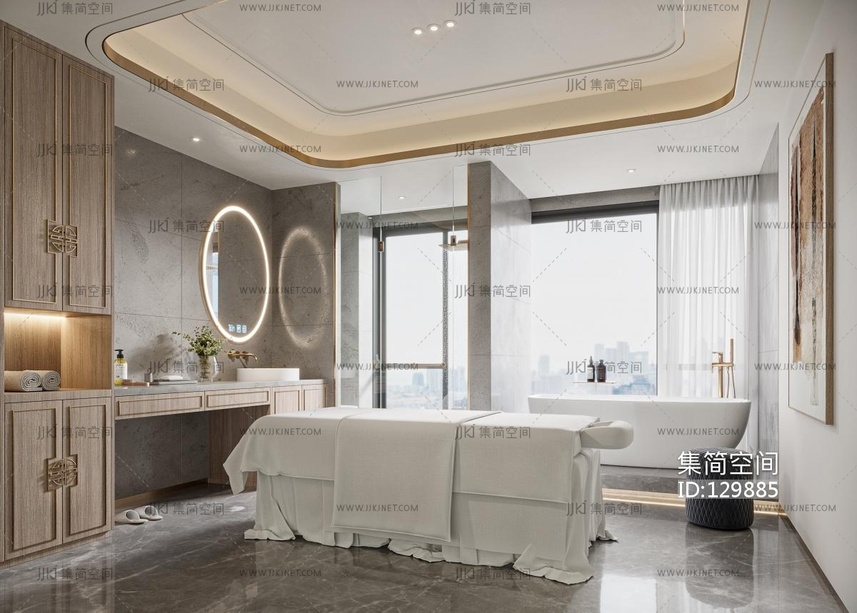 新中式SPA,按摩床按摩房, 3d模型下载 [模型ID:129885]