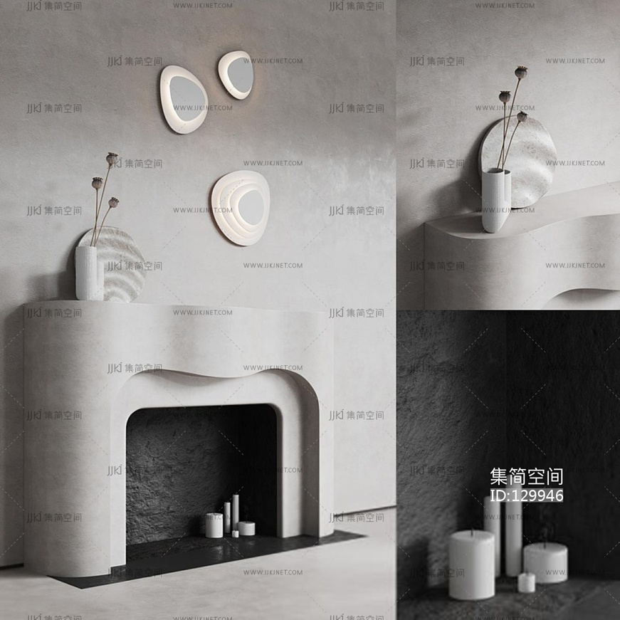 侘寂风水泥壁炉 3d模型下载 [模型ID:129946]