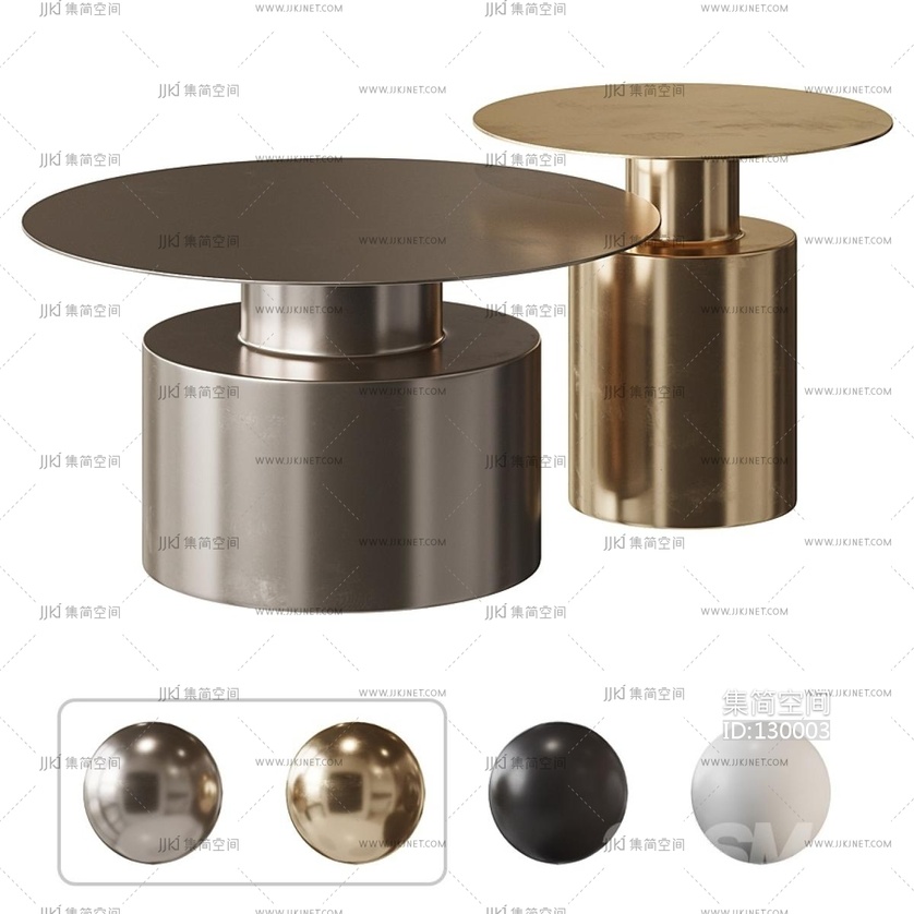 欧式金属大理石咖啡桌圆形边桌圆形桌子3D模型3d模型下载