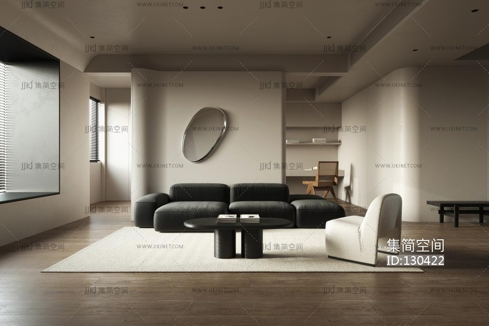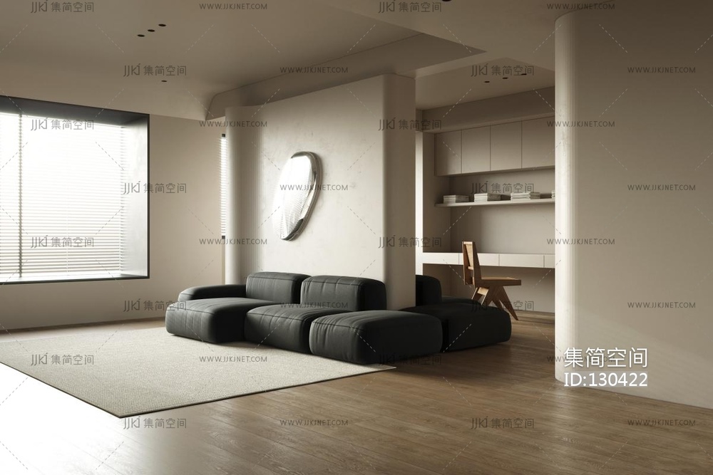 诧寂风客餐厅沙发茶几 3d模型下载 [模型ID:130422]