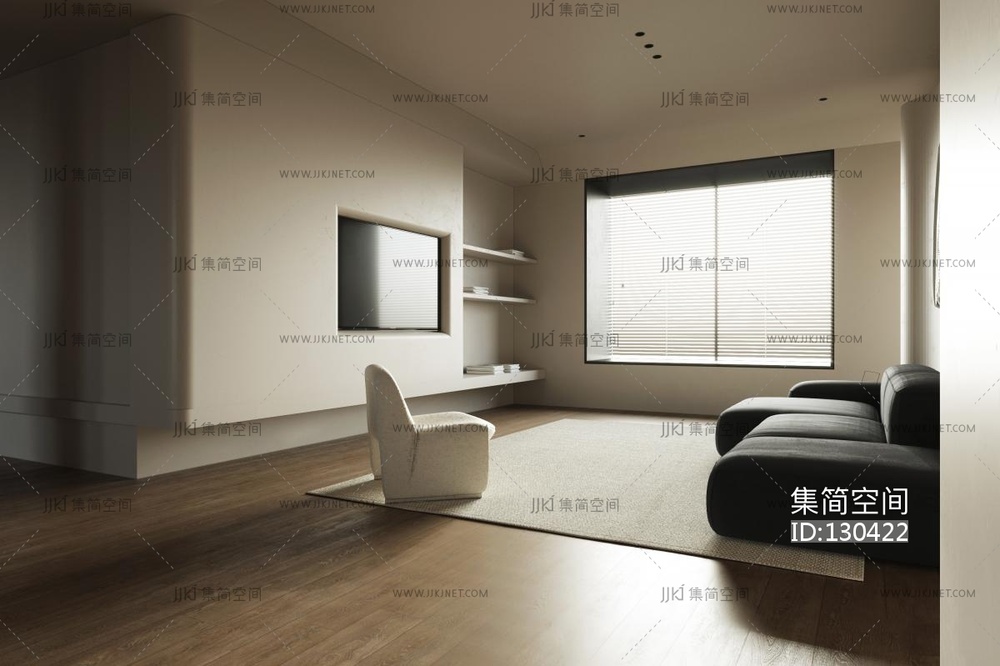 客餐厅现代客厅橱柜电视背景墙,奶油风休闲椅3d模型下载