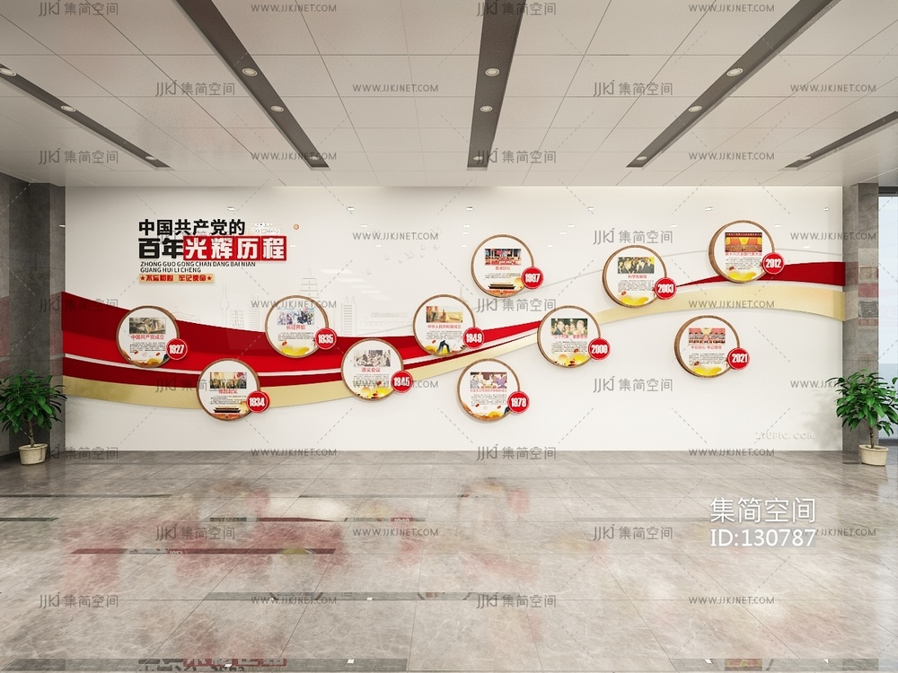党建展厅展板展墙文化墙 3d模型下载 [模型ID:130787]
