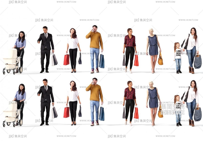 现代时尚购物人物男人女人小孩儿童 3d模型下载 [模型ID:131009]