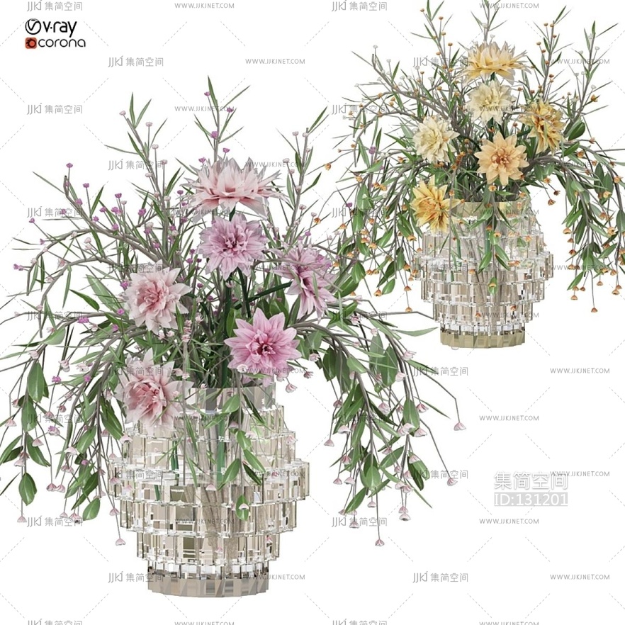 现代花艺__玻璃花瓶_鲜花_插花_装饰摆件3D模型3d模型下载