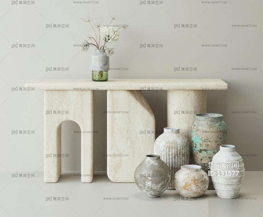 侘寂风陈列台陶土罐瓶罐器皿 3d模型下载 [模型ID:131577]