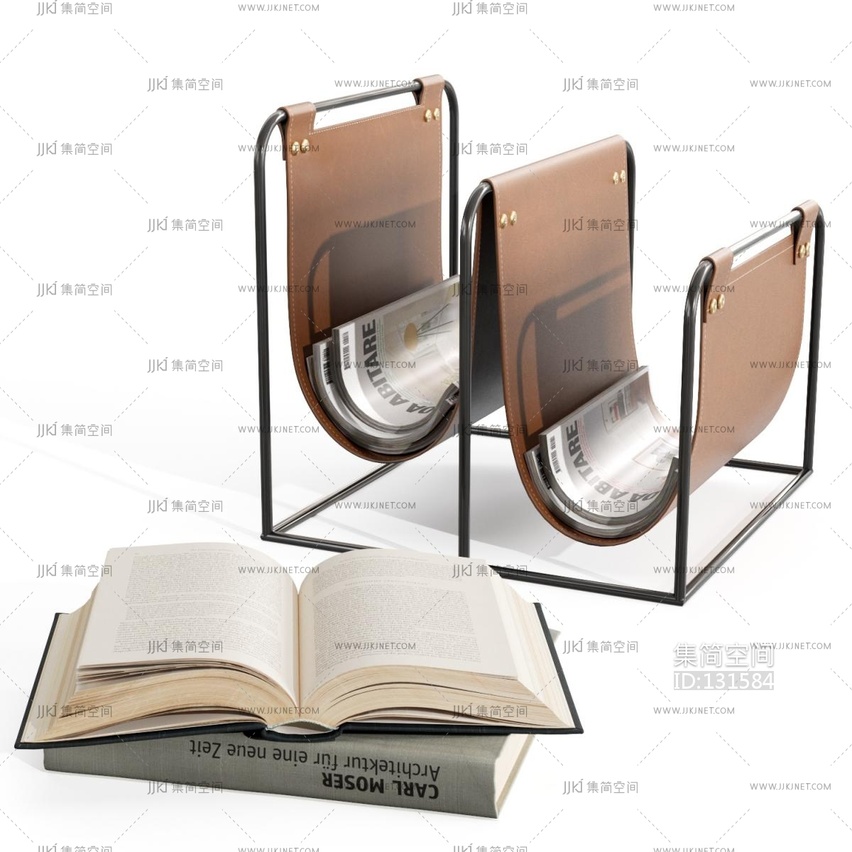 现代书籍摆件皮革杂志架书架 3d模型下载 [模型ID:131584]