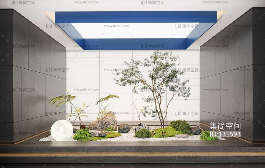 室内绿植 假石造景新中式天井景观 3d模型下载 [模型ID:131593]