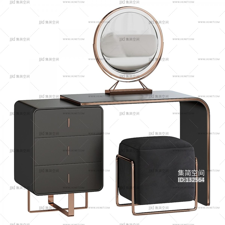 现代轻奢风梳妆台 3d模型下载 [模型ID:132564]