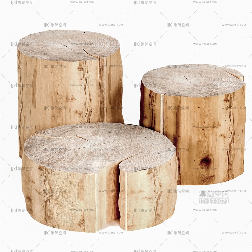原木木桩 圆凳木墩子3d模型 3d模型下载 [模型ID:133671]