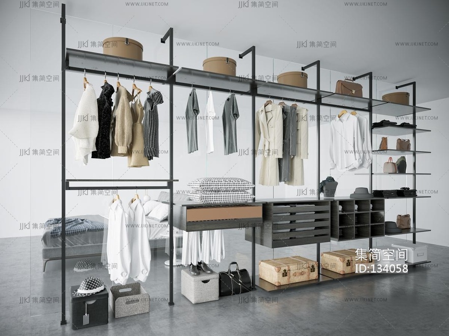 现代衣架,衣服,包包,皮鞋,皮箱3D模型 3d模型下载 [模型ID:134058]