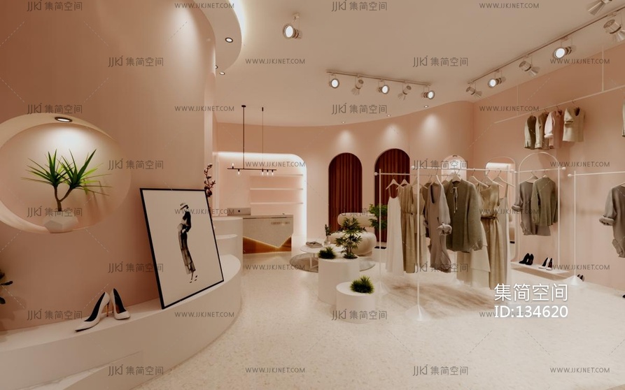 现代奶油中古风服装店 3d模型3d模型下载